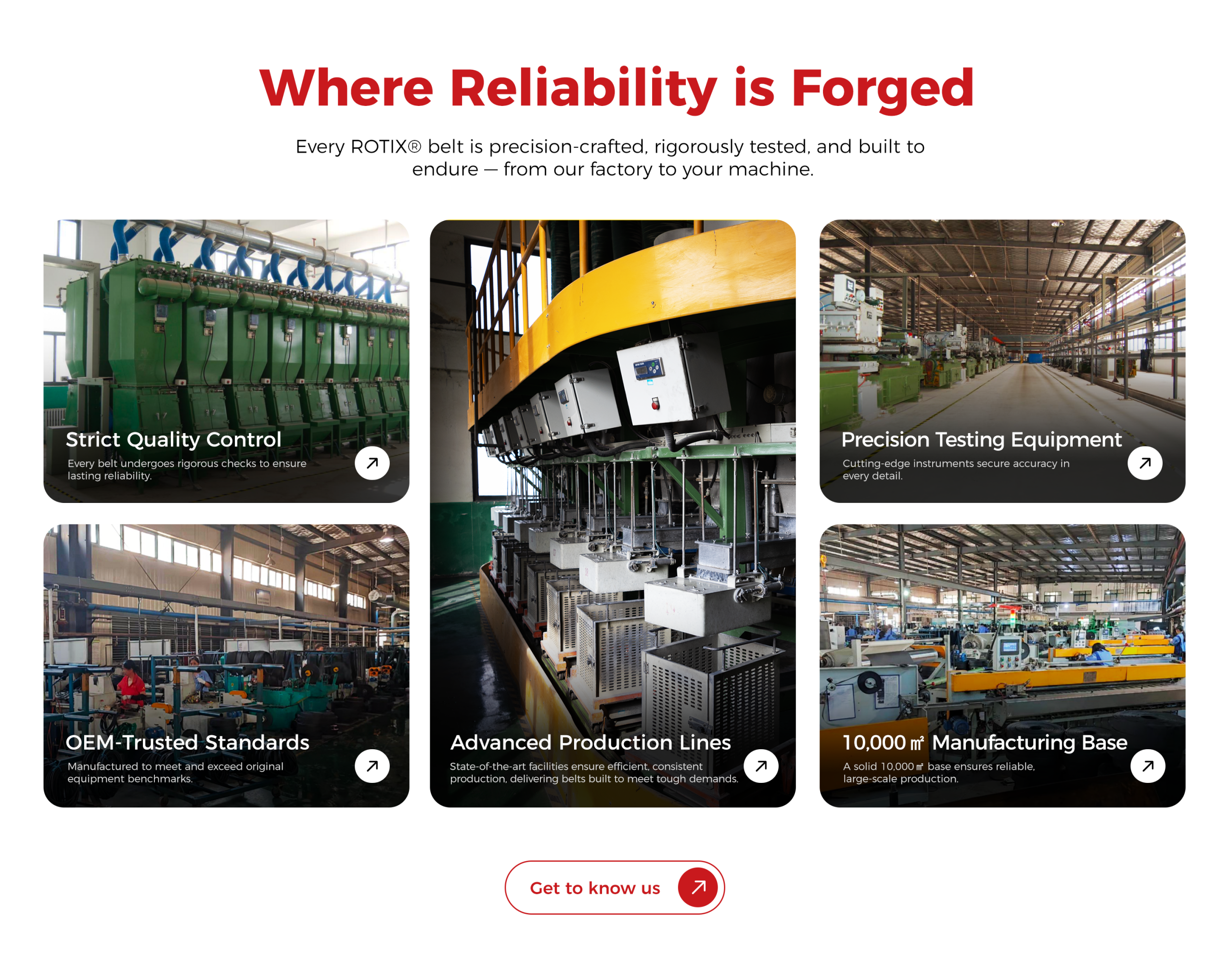 ROTIX® belts are engineered to meet OEM standards, trusted by leading equipment brands worldwide.