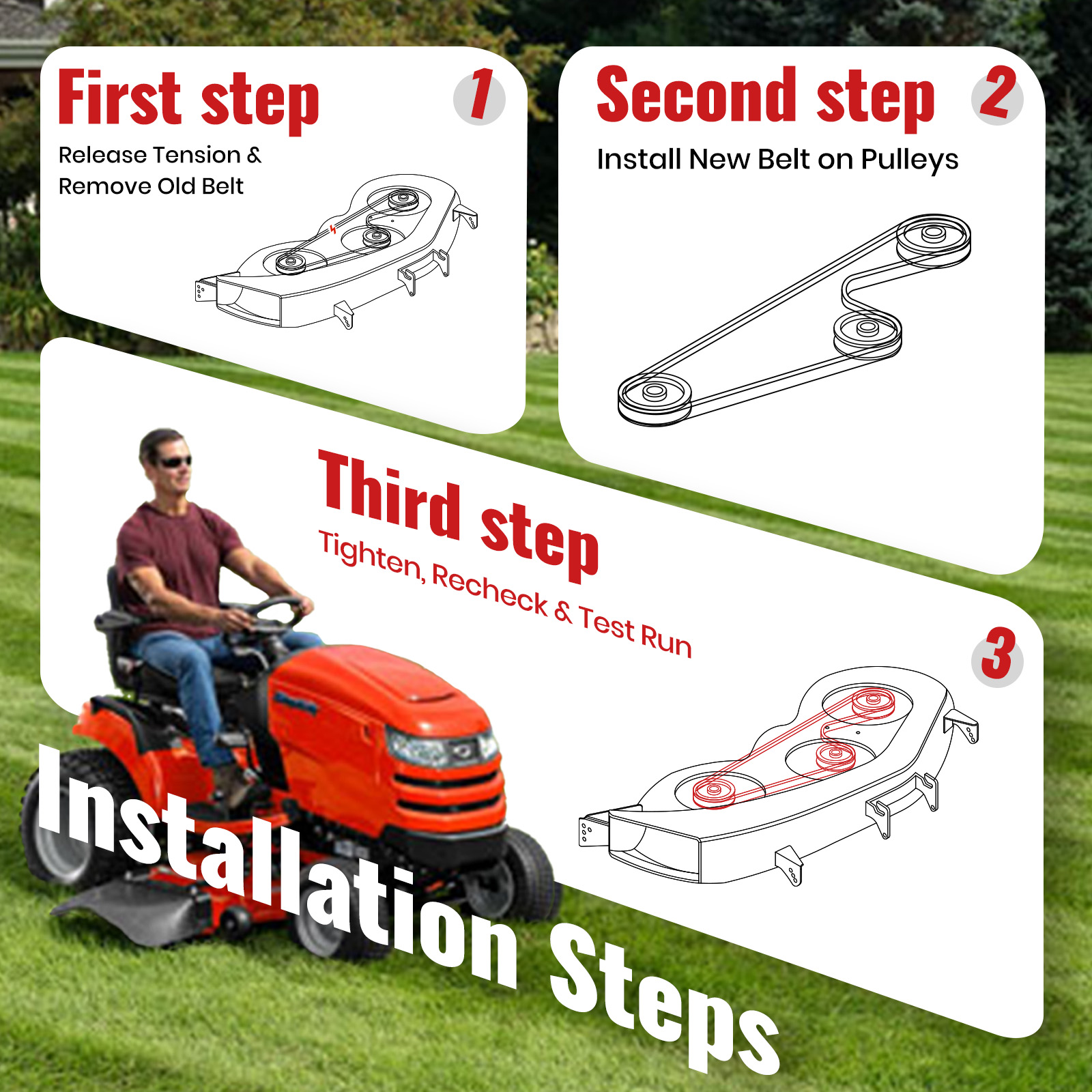 • 【BUILT FOR EXTREME MOWING CONDITIONS】ROTIX Mower Belts aren’t made for casual use — they’re purpose-built for real mowing stress: high heat, sudden shock, dust, debris, and constant starts and stops. With a Kevlar tensile core for strength, fiber-reinforced rubber for crack resistance, and a dry-wrap outer layer for stable grip, this multi-layered build delivers lasting performance where standard belts wear out fast.