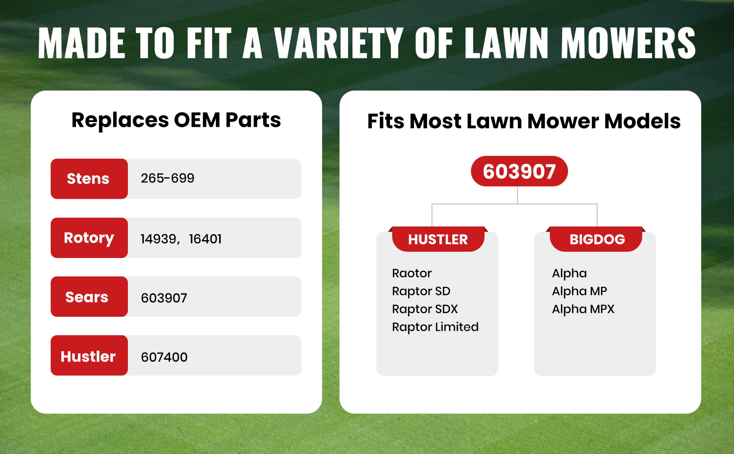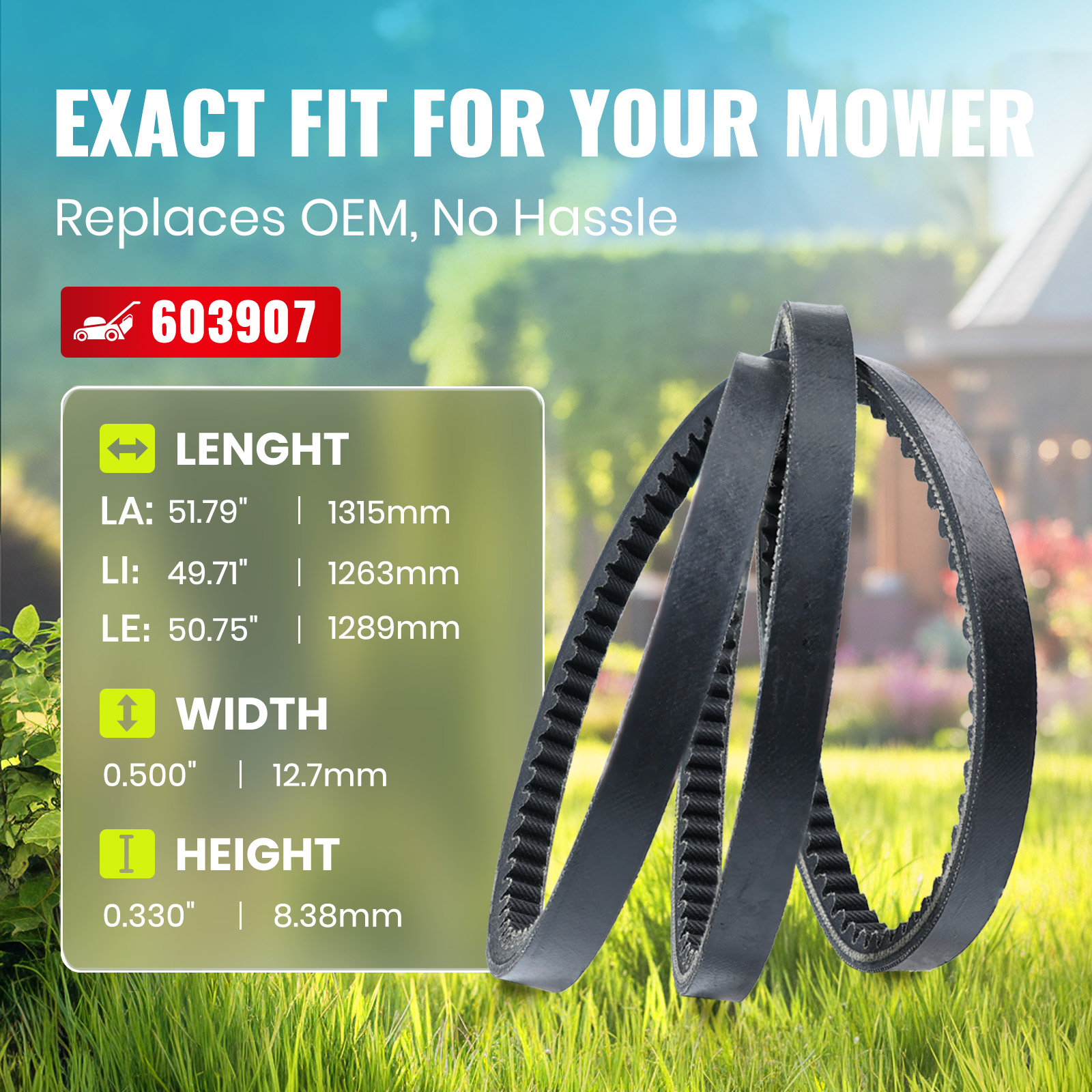 • 【PERFECT FIT OEM REPLACEMENT BELT】603907 Pump Drive Belt with Exact 1/2” x 50.75″ dimensions. Direct replacement for Hustler OEM 603907 and 607400; compatible with Stens 265-699; Rotary 14939; A&I A-603907. Fits Hustler Raptor Series including Raptor SD, Raptor SDX, Raptor Limited, and Raptor Flip-Up zero-turn riding mowers (2013–2020 models).