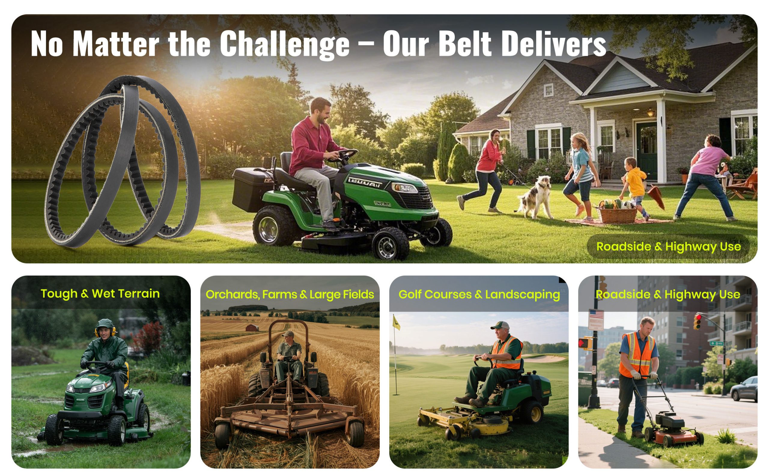 • 【BUILT FOR EXTREME MOWING CONDITIONS】ROTIX Mower Belts aren’t made for casual use — they’re purpose-built for real mowing stress: high heat, sudden shock, dust, debris, and constant starts and stops. With a Kevlar tensile core for strength, fiber-reinforced rubber for crack resistance, and a dry-wrap outer layer for stable grip, this multi-layered build delivers lasting performance where standard belts wear out fast.
